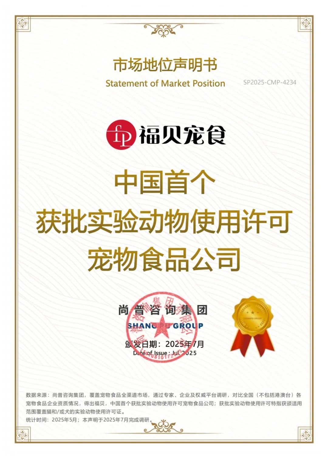 近日,尚普咨詢集團發布權威認證,福貝寵食被評定為"中國首個獲批實驗動物使用許可寵物食品公司"。這一結論基于對中國大陸寵物食品市場約400個推出寵物食品的企業的調研,而獲批實驗動物使用許可特指獲頒適用范圍覆蓋貓和/或犬的實驗動物使用許可證,具有行業標桿意義。